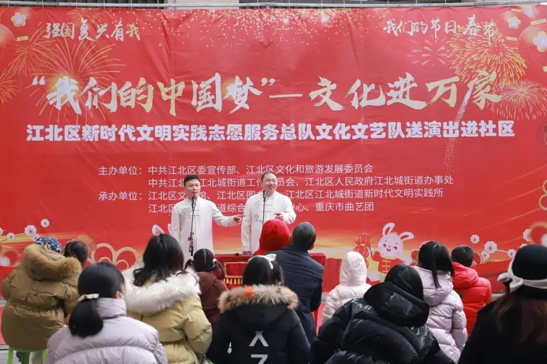 江北区文化旅游委开展“我们的中国梦”——文化进万家活动,江北区新时代文明实践志愿服务总队文化文艺队将12场精彩绝伦的演出送入社区,让群众切实体会到参与感、获得感、幸福感。