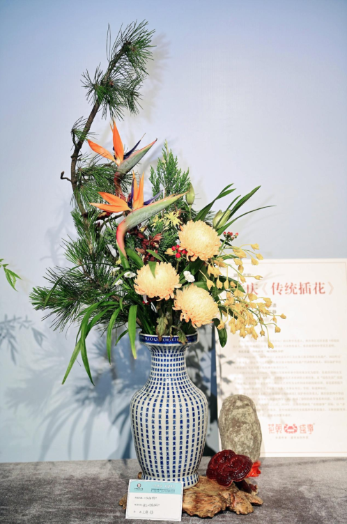江北区区级非物质文化遗产项目《传统插花》代表性传承人王静代表重庆《传统插花》受邀参加了本次展会。