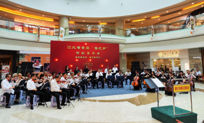 为全面贯彻落实党的二十大精神,进一步践行社会主义核心价值观,讴歌新时代新征程新重庆新江北新生活,发挥文化服务功能,着力优化江北区营商环境,5月9日下午,江北城街道党工委、办事处联合江北区文化馆、重庆弘道国学研究院天歌文学社等单位在江北嘴财信广场隆重举行江北嘴首届“春之声”诗歌音乐会,来自三洞桥、桂花街社区的150名诗歌和音乐爱好者参加演出。