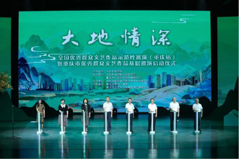 7月11日,由文化和旅游部主办;文化和旅游部公共服务司、重庆市文化和旅游发展委员会承办;文化和旅游部全国公共文化发展中心协办;重庆市群众艺术馆、重庆市江北区文化和旅游发展委员会实施的“大地情深”全国优秀群众文艺作品(群星奖)示范性巡演暨重庆市优秀群众文艺作品基层巡演启动仪式在重庆江北精彩上演。江北区文化馆参加承办实施工作。