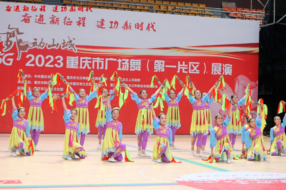 奋进新征程 建功新时代 2023“欢跃四季 · 舞动山城”重庆市广场舞展演以镇街、区县、片区、市级逐级展演的方式开展。在本场展演中,来自渝中区、大渡口区、江北区、沙坪坝区、九龙坡区、南岸区、北碚区、渝北区、巴南区、两江新区、高新区的20支舞蹈队伍、480名广场舞爱好者精彩亮相,在规定舞蹈展演、自选舞蹈展演和优胜比拼三个环节中展示动人风采。