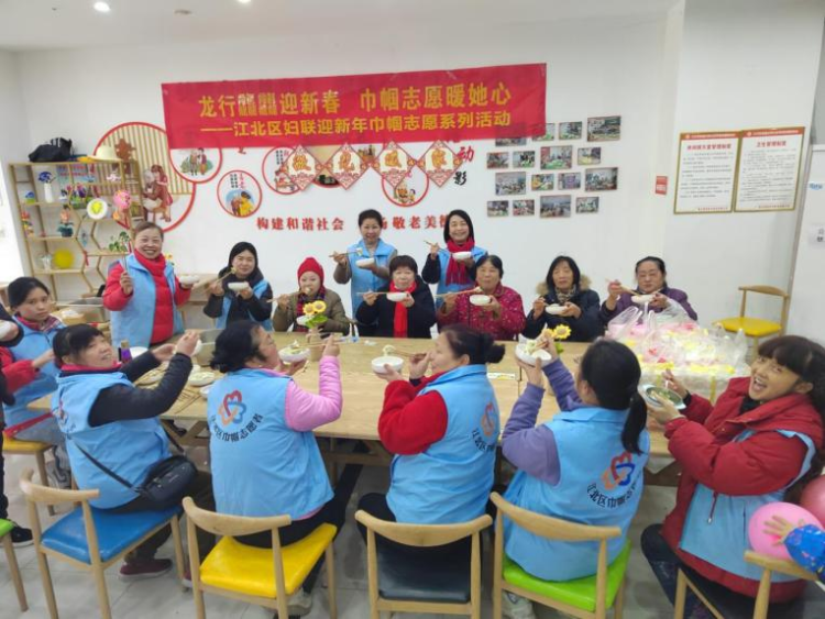 春节期间,江北大石坝街道邀请了辖区困难妇女群众一起包汤圆。志愿者们提前一天准备好了糯米粉、馅儿料以及各式包汤圆要用的工具。活动现场一派热闹景象,大家将糯米粉、水分别倒入大盘中,将面粉变成面团、揉一揉,搓一搓,不一会,一个个雪白的汤圆逐渐成型,摆满了托盘。参与活动的困难妇女不仅感受了中华传统文化节日的氛围,也体验了团聚的温暖。随后,巾帼志愿者们将分装好的汤圆、饺子送到了困难妇女、独居老人家中,并送上节日的祝福。