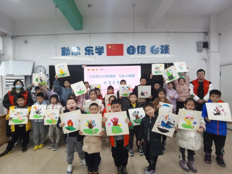 近日,江北团区委招募数名“返家乡”大学生,在江北区港城小学开展了为期两周的2024年寒假“七彩小课堂”公益文化体验课。此次活动吸引30余名少年儿童参加。