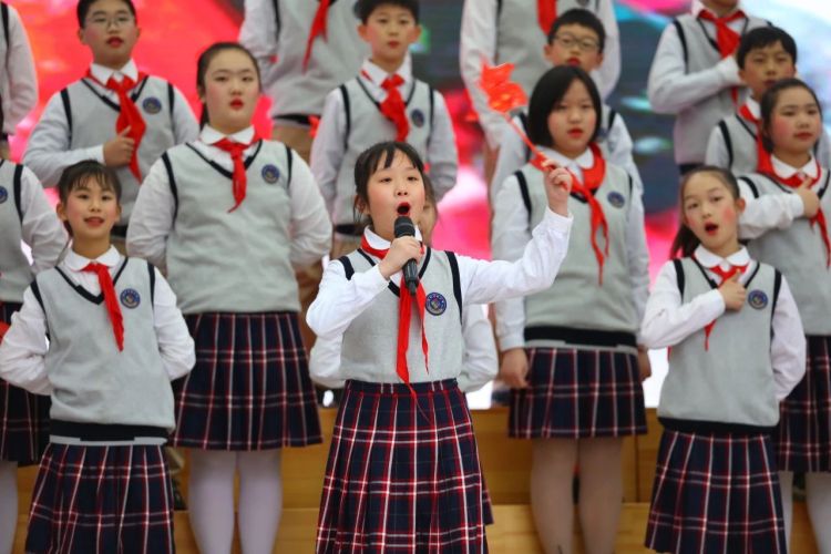 庄严的升旗仪式,雄壮有力的国歌响彻整个校园,国旗下五年级四班的同学们通过歌舞表演《雷锋精神代代传》追忆了雷锋叔叔的少年时代,热情洋溢的舞蹈表达了孩子们对雷锋叔叔的崇高敬意,同时鼓舞着新美少年们学习雷锋精神。
