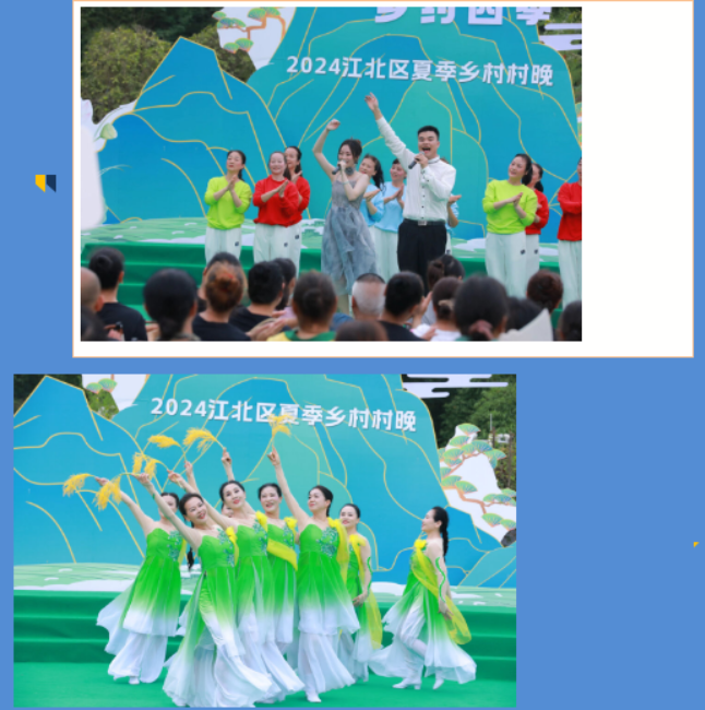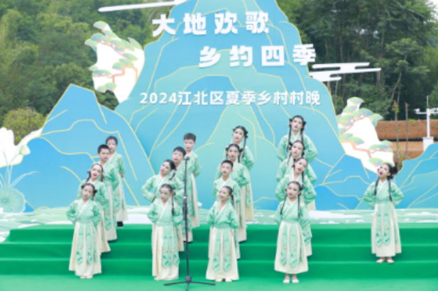 为热烈庆祝中华人民共和国成立75周年,进一步推进乡村文化振兴,丰富农村精神文化生活,构建宜居宜业和谐美丽的乡村新画卷,5月28日,“大地欢歌 四季村晚”绿水青山歌飞扬——2024江北区夏季乡村村晚在五宝镇逅小野江畔露营基地精彩呈现。