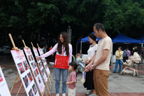 本次活动由惠民演出、非遗互动体验、“文小江在身边”党建品牌主题展览、文旅志愿者注册四个板块组成。惠民演出在文化馆馆办艺术团带来的原创舞蹈《灯火重庆》中拉开帷幕。紧接着,文化馆音乐干部以原创音乐作品《山水巴渝》点燃了现场观众热情,随后上演的舞蹈《远山》《鼓声响起的地方》、川剧变脸、男声独唱《飘扬的红》等节目也赢得观众阵阵掌声。最后,整场文艺演出在歌曲《我的未来不是梦》中落下帷幕。